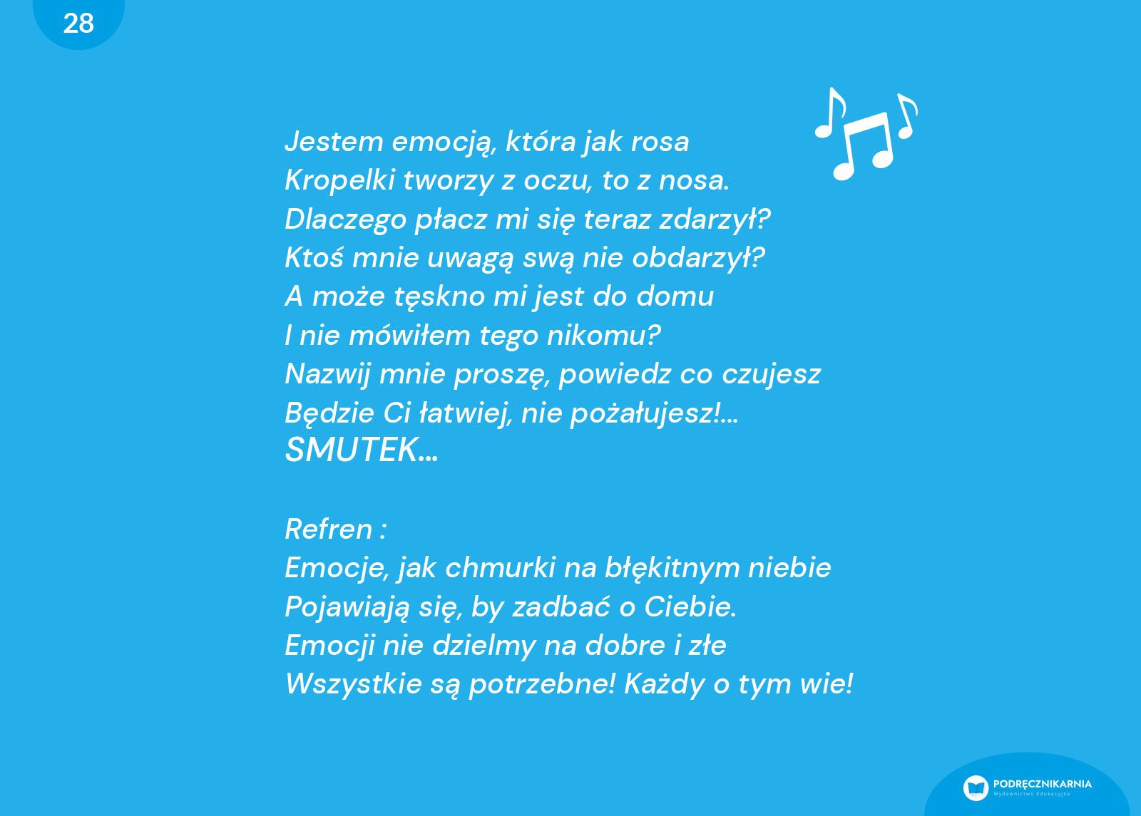 to nowoczesna pomoc dydaktyczna wspierająca rozwój emocjonalny przedszkolaków we wszystkich kategoriach wiekowych. Zawiera trzy bloki tematyczne: Witajcie, emocje! – do nauki rozpoznawania i nazywania uczuć, Po prostu być – ćwiczący uważność i wyciszenie, oraz Ruch jest potrzebą – łączący aktywność fizyczną z rozwojem emocjonalnym.