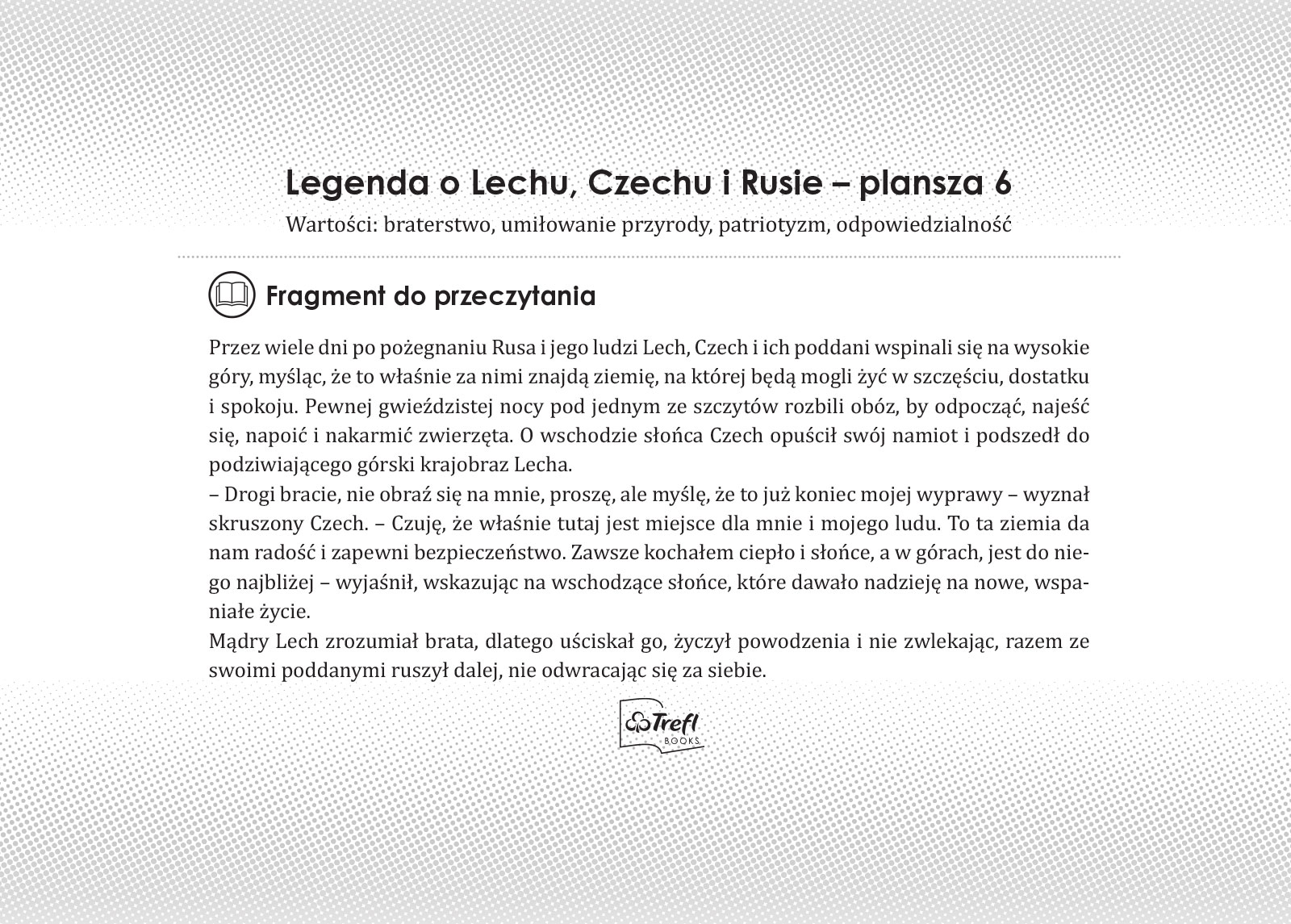 Klasyczne legendy polskie w nowym, odświeżonym wydaniu. Znane motywy kultury polskiej zostały przedstawione w prosty sposób, bez przemocy, z myślą o możliwościach poznawczych przedszkolaków. Scenki z życia rezolutnych bohaterów stają się punktem wyjścia do odkrywania legend, które dzieci poznają poprzez zabawne dialogi i codzienne przygody. Każda historia niesie ważne wartości - uczy odwagi, przyjaźni, wdzięczności i miłości do ojczyzny. To atrakcyjna forma nauki i zabawy, która wprowadza przedszkolaki w świat polskich tradycji.