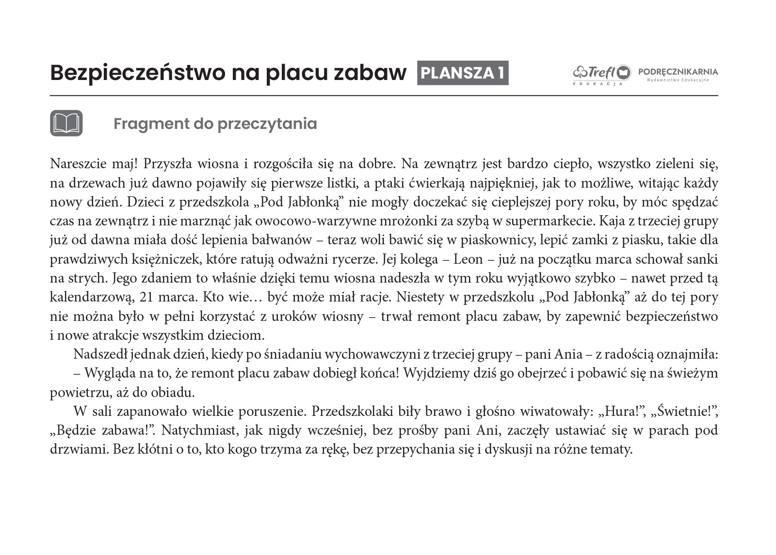 • doskonała pomoc, która urozmaici każde zajęcia. Dodatkowo na naszej platformie edukacyjnej edukacja.podrecznikarnia.pl nauczyciele znajdą obudowę merytoryczną: scenariusze zajęć, propozycje pytań do tekstów, zabawy dostosowane do możliwości dzieci oraz nagrania bajek w formacie audio. Wszystko, co ułatwi przeprowadzenie interesujących i angażujących zajęć.