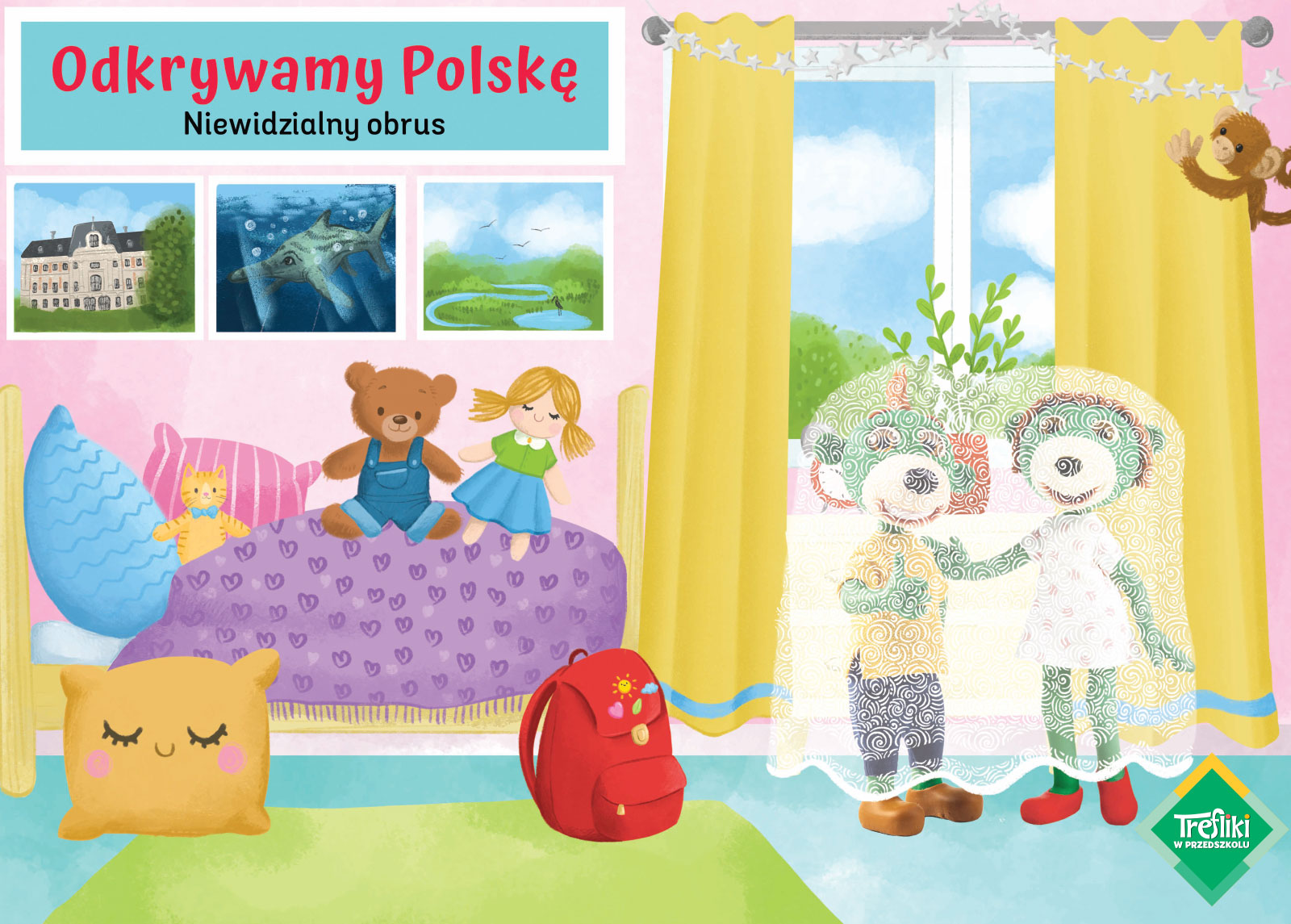 Treflik odkrył w komodzie Mamusi coś niezwykłego. Pozornie zwyczajny obrus okazał się magiczny – gdy tylko ktoś się pod nim schowa, staje się niewidzialny i dodatkowo może przemieszczać się, gdzie tylko chce! To kolejna okazja do pełnej atrakcji podróży po Polsce. Gdzie tym razem zagoszczą Trefliki? Na początek wybiorą się na prehistoryczne spotkanie z dinozaurami (i nie tylko!) w Juraparku w Bałtowie, a następnie odwiedzą jedną z najdłuższych i najgłębszych jaskiń w Polsce – Jaskinię Niedźwiedzia w Kletnie. Trefliki czeka też wizyta na zamku w Pszczynie. A co gdy będzie im mało bajkowego świata? Spokojnie – na końcu podróży czeka ich kolejna niespodzianka!